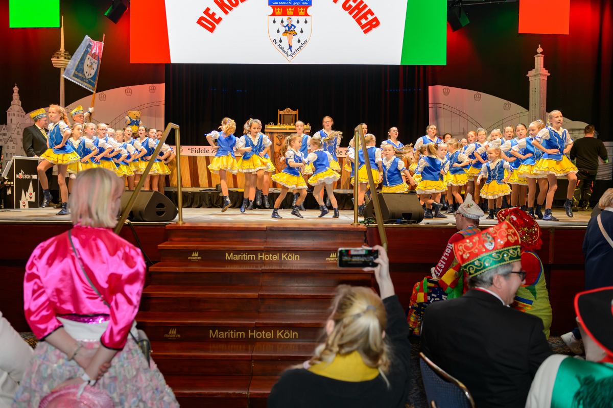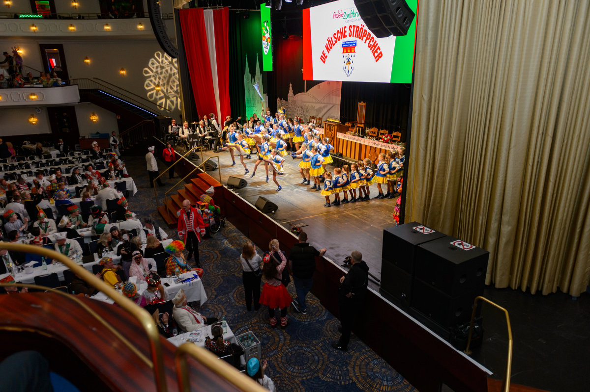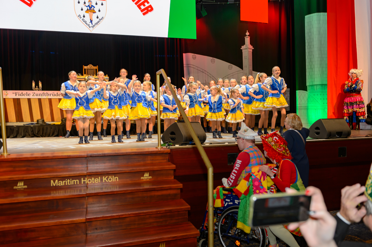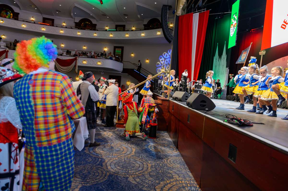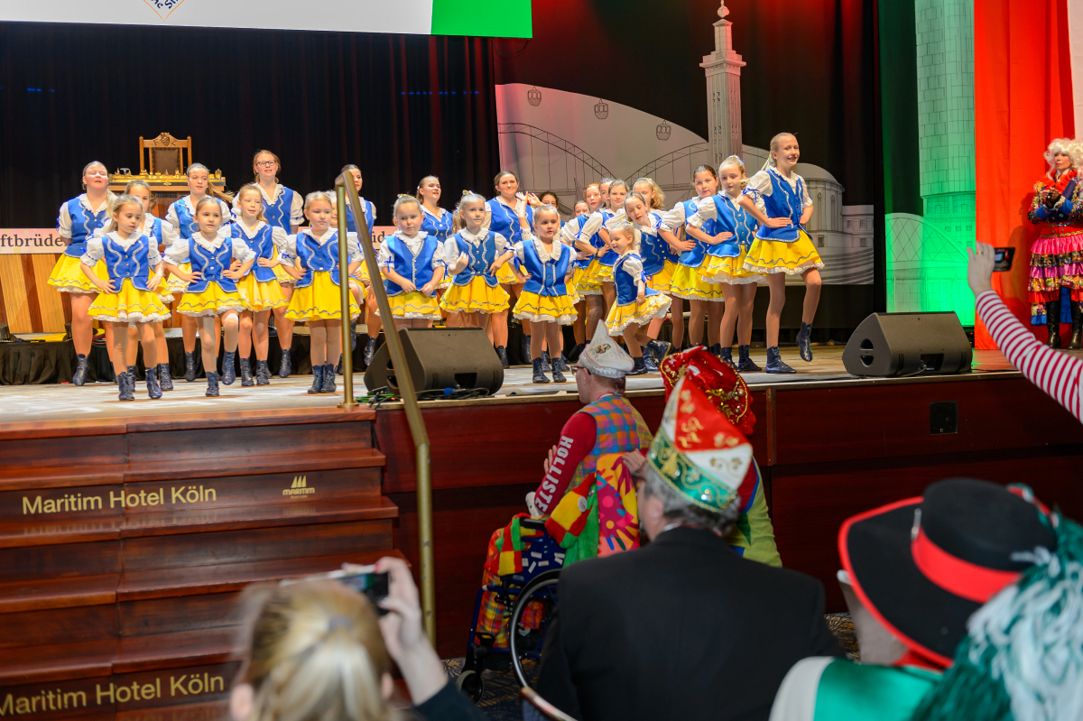 Es ging ins bekannte Maritim-Hotel wo die "KKG Fidele Zunftbrüder" die Sitzung "Frack-trifft-Kostüm" veranstaltete. Jetzt konnten unsere Kleinen auch einmal diese ganz besondere "Große Bühnen-Luft" schnuppern.