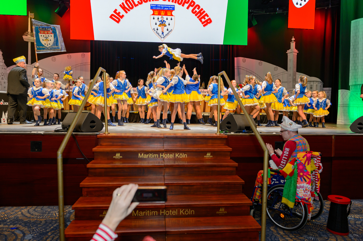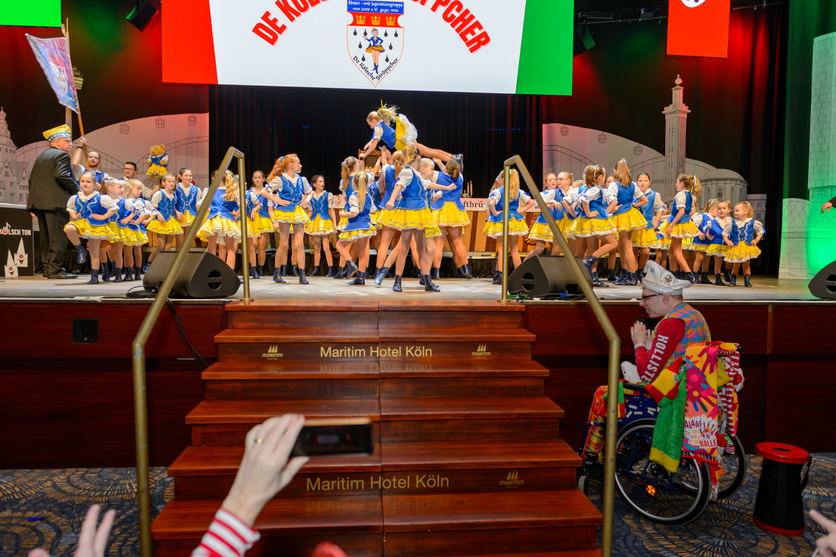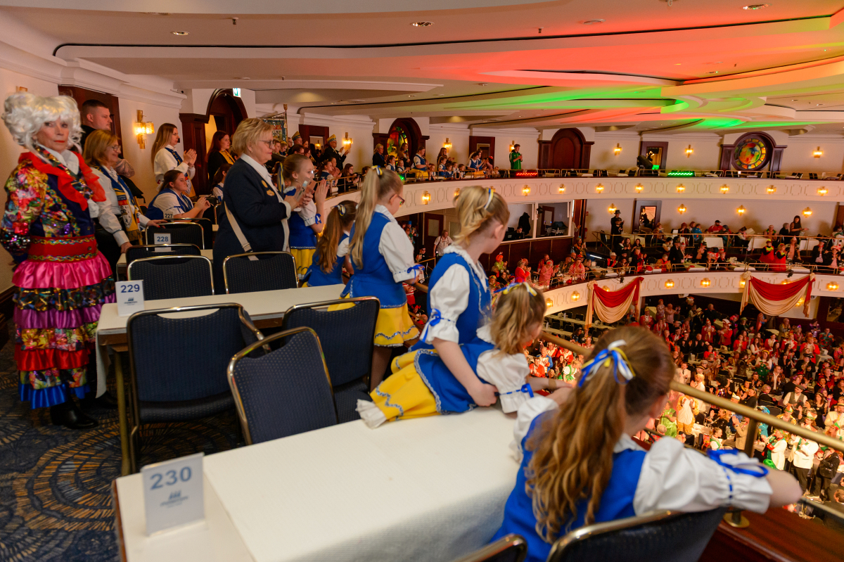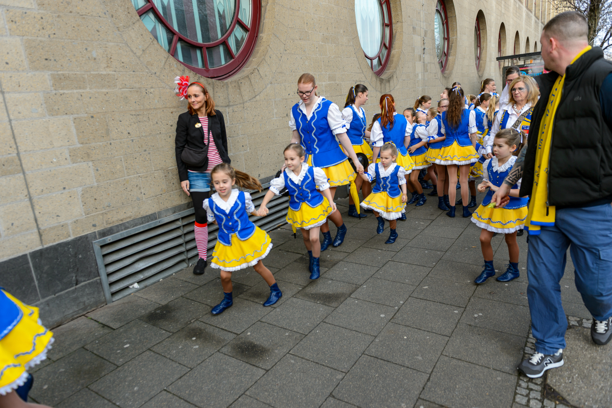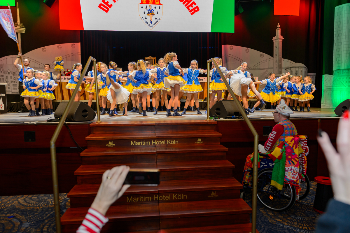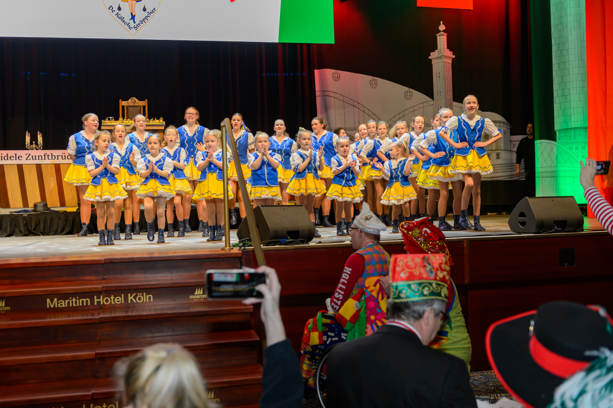 Es ging ins bekannte Maritim-Hotel wo die "KKG Fidele Zunftbrüder" die Sitzung "Frack-trifft-Kostüm" veranstaltete. Jetzt konnten unsere Kleinen auch einmal diese ganz besondere "Große Bühnen-Luft" schnuppern.
